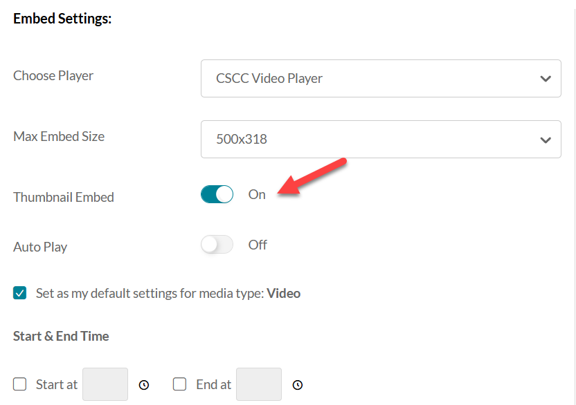 - Hover over the video, then click the gear (Embed Settings) icon on the right.